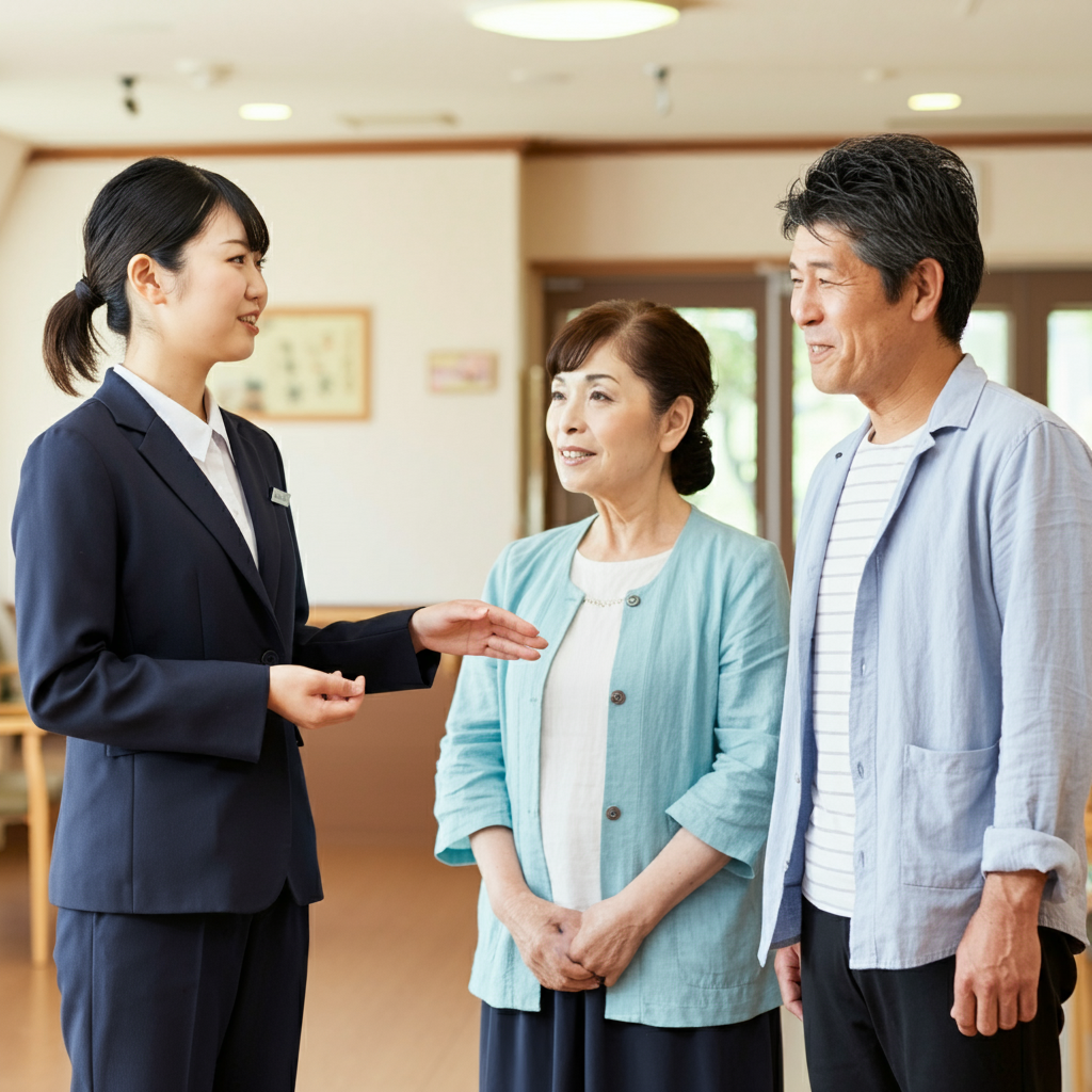 - 施設見学に同行させていただき、確認すべきポイントをしっかりフォローさせていただきます。見学後は当日の振り返りと今後の方針のご確認とご相談をさせていただきます。
